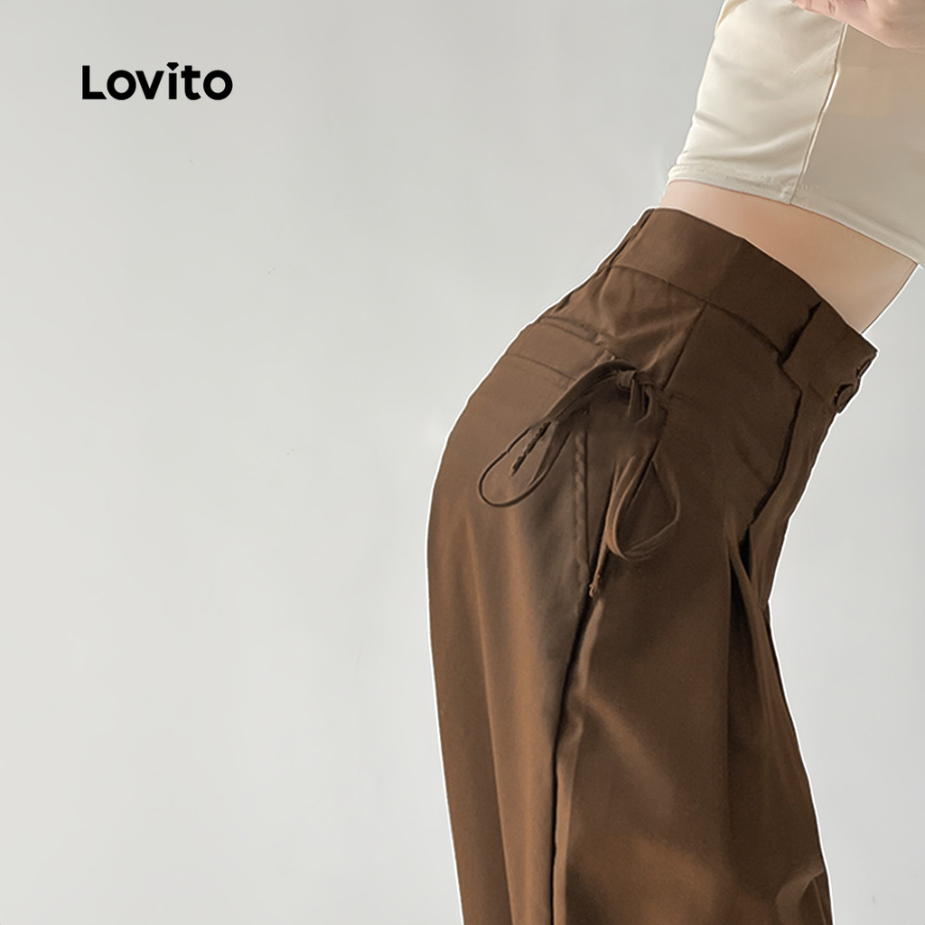 Lovito Calça Casual com bolso liso e laço para mulheres L130AD054