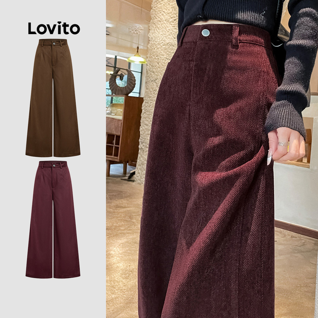 Lovito Calça Casual com Zíper, Clássica e Versátil, Textura, Calça Borgonha para Mulheres. L173AD152