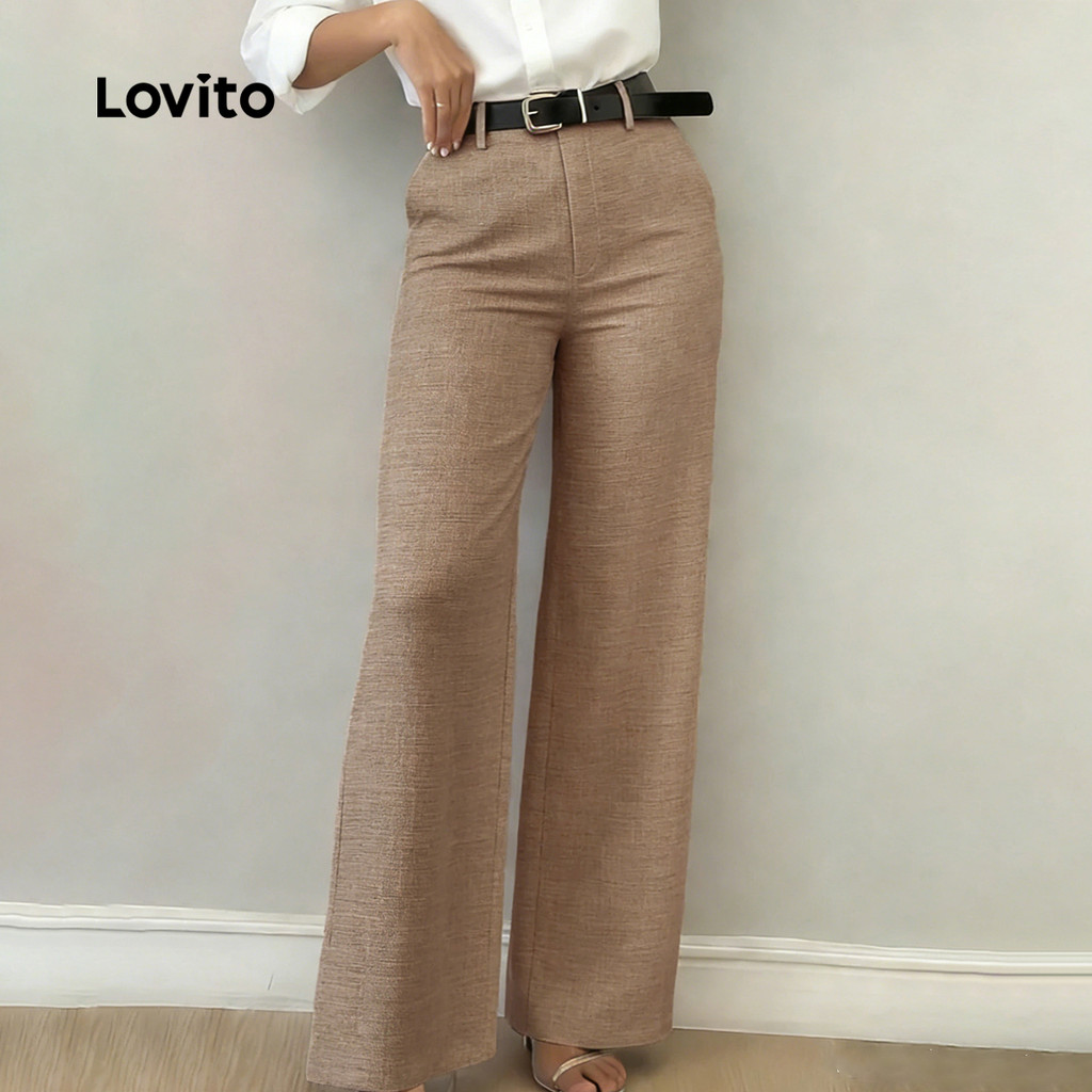 Lovito Calça Casual com Zíper de Bolso Primavera/verão Marrom para Mulheres. L172LD1947