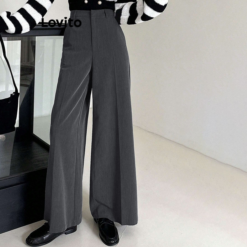 Lovito Calça Casual Feminina Lisa Básica Modelo LAD106654