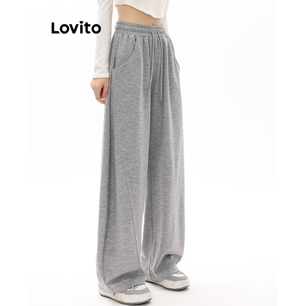 Lovito Calça Casual Feminina Lisa Com Cordão Modelagem Solta Em Malha Modelo LNA36090(multicolorida)