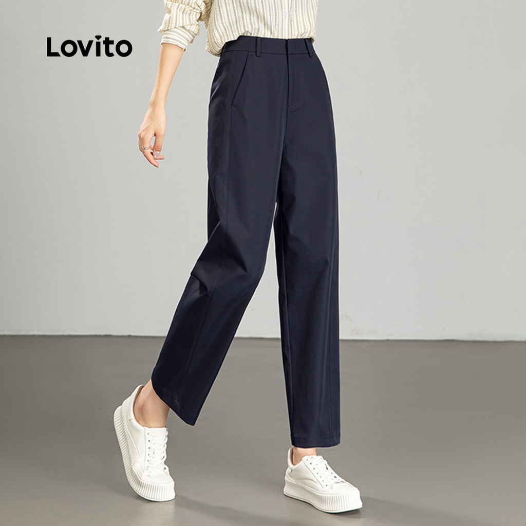 Lovito Calça Casual Lisa Com Zíper E Bolso Para Todas As Estações Azul Marinho Para Mulheres LBL24208