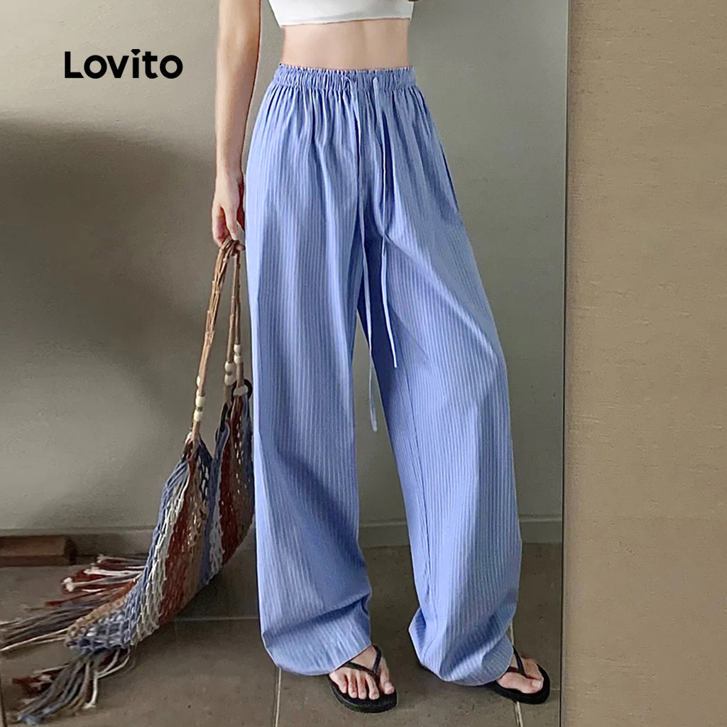 Lovito Calça Casual Listrada Com Cadarço, Calça De Verão Para Mulheres L113MD426