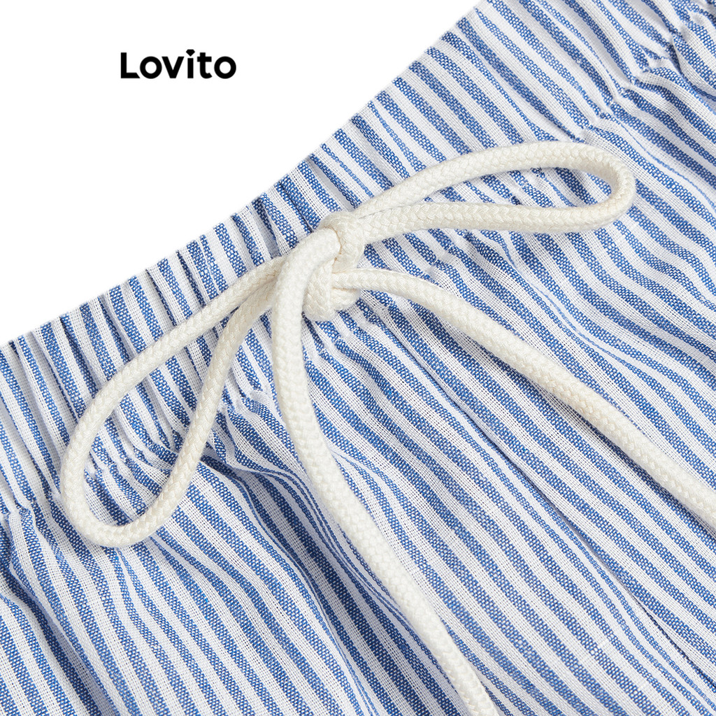 Lovito Calça Casual Listrada Com Cordão E Tecido Texturizado Para Mulheres L93AD016 (Multicolorido)