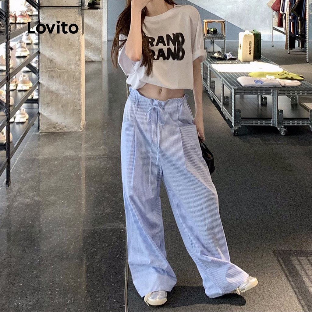 Lovito Calça Casual Listrada Com Cordão Verão/Primavera Para Mulheres L125AD017