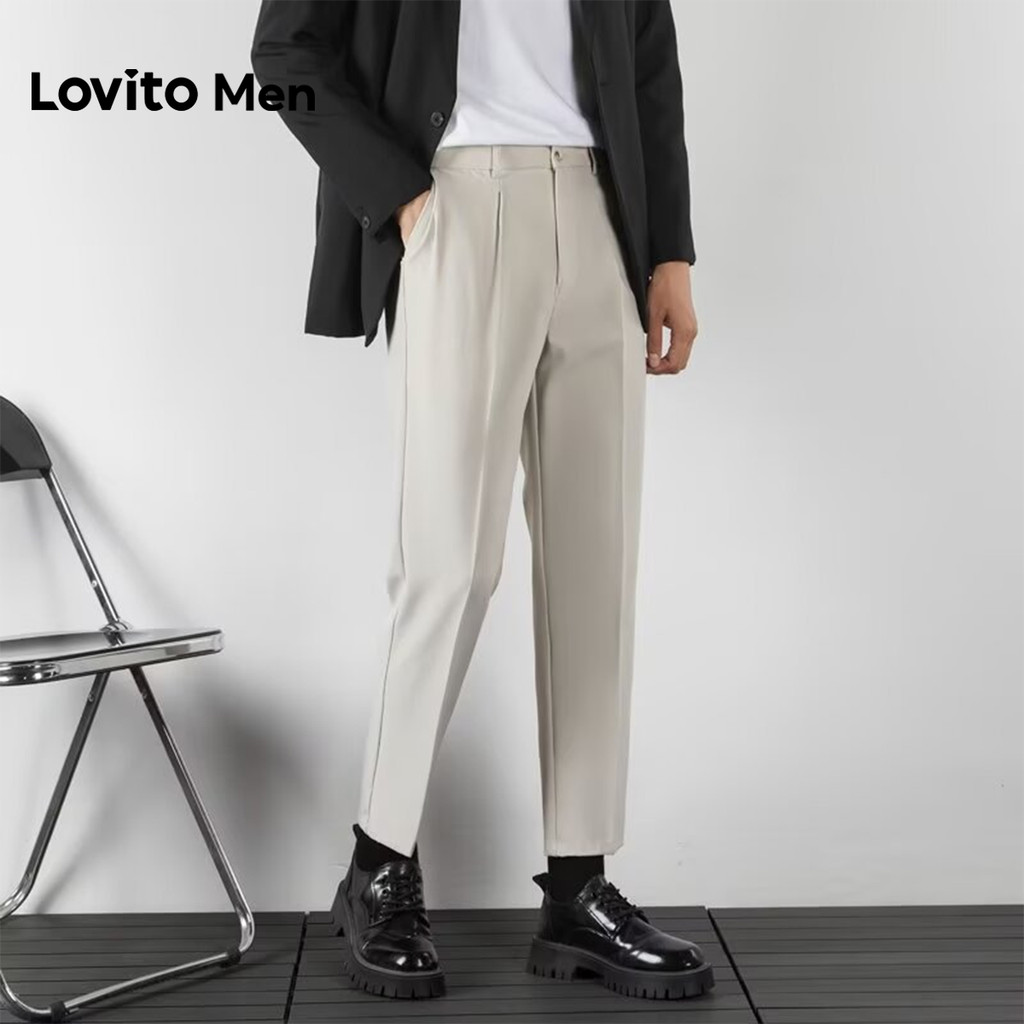 Lovito Calça Casual Masculina com Bolso, Terno Bege para Homens LNE131081