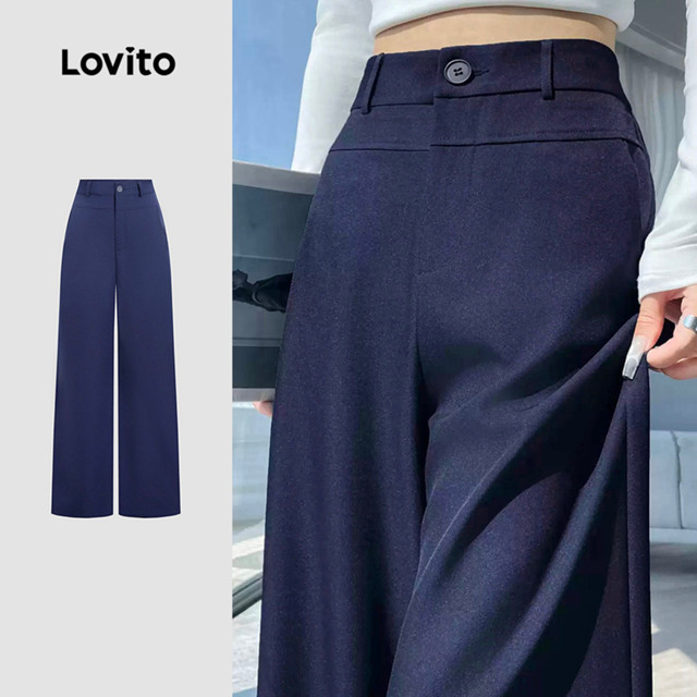 Lovito Calça Casual Simples Primavera/verão Calça Azul-marinho para Mulheres L172ED075