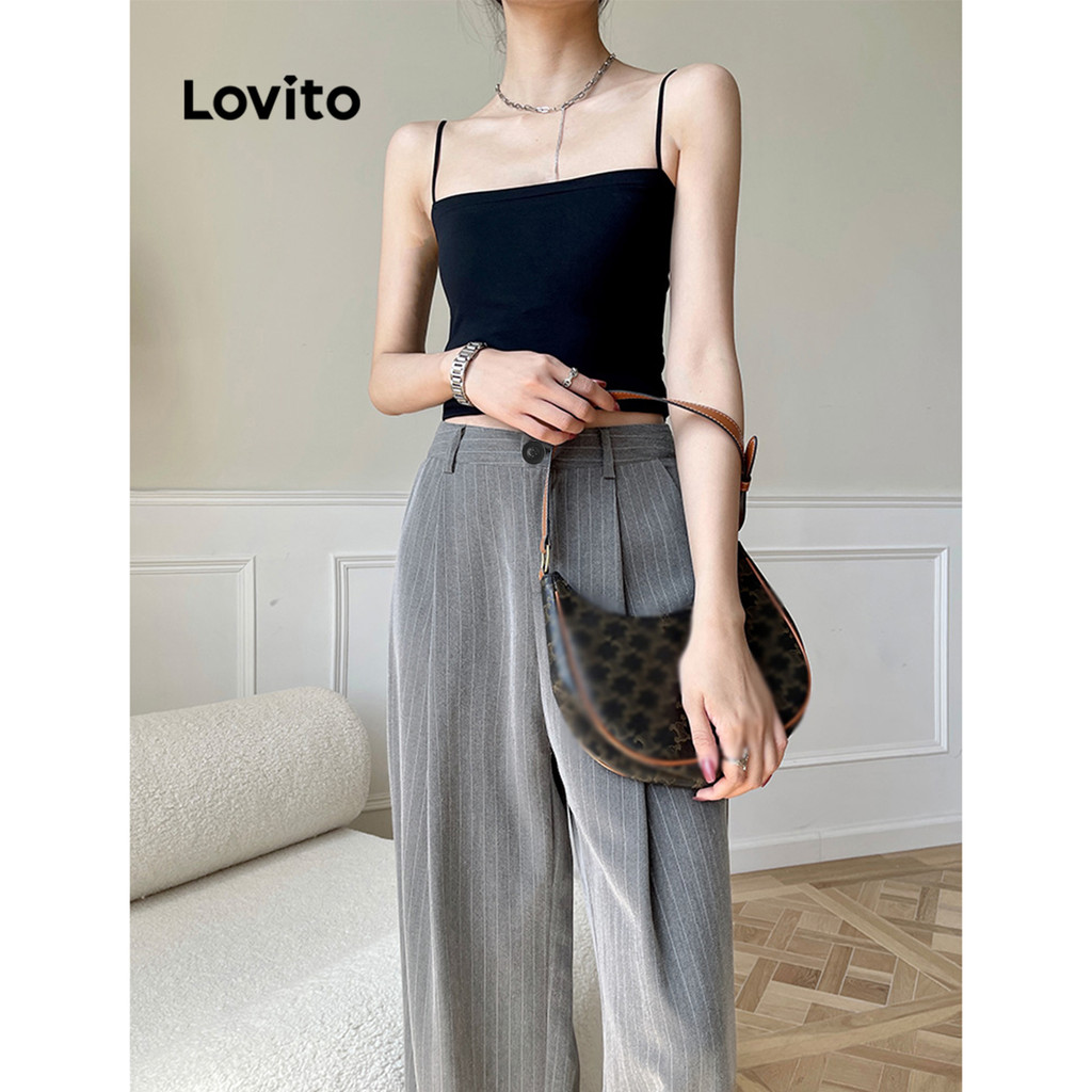 Lovito Calça Feminina Casual Listrada com Estampa de Botão L76AD101 (Multicolorida)