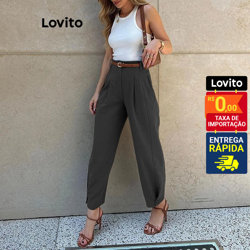 Lovito Calça Feminina Detalhe Botão Barra LNL40163