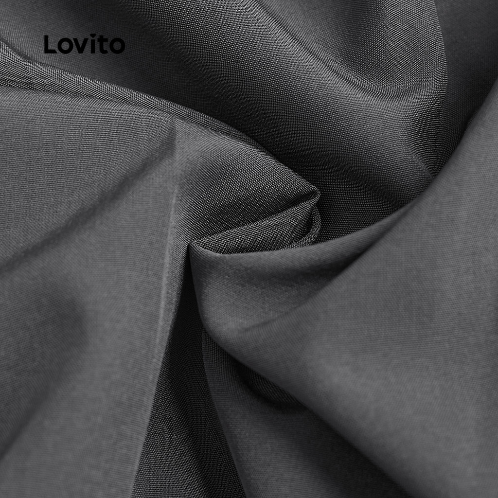 Lovito Calça Feminina Elegante Zíper Cinza Liso Verão/Primavera L134ED110