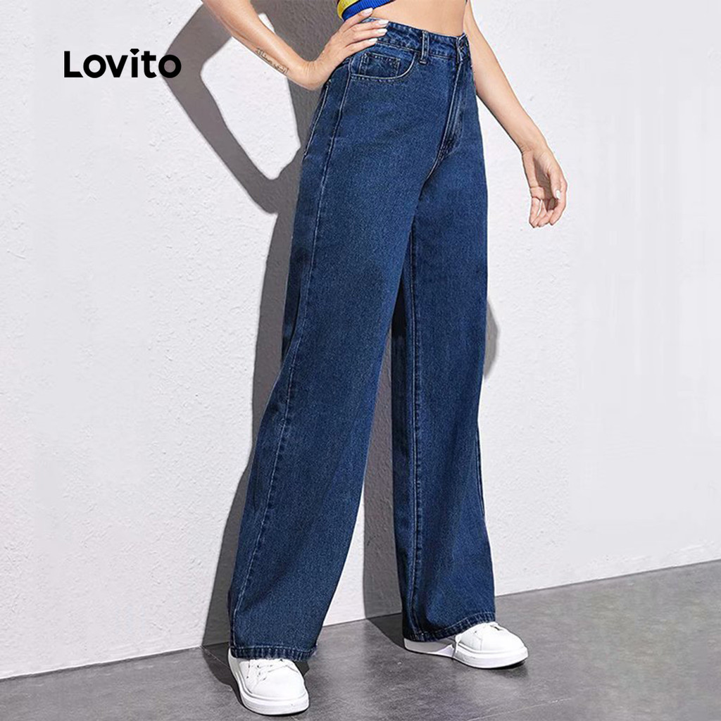 Lovito Calça Jeans Casual Clássica E Versátil Com Zíper Lavagem Especial Para Todas As Estações Para Mulheres LNE121021
