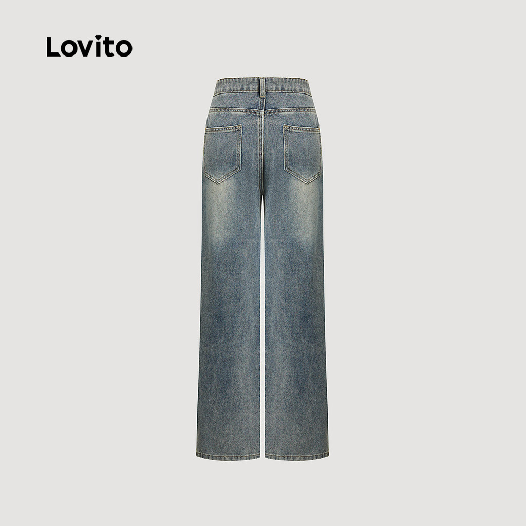 Lovito Calça Jeans Feminina Casual Lisa e Rasgada L114AD862