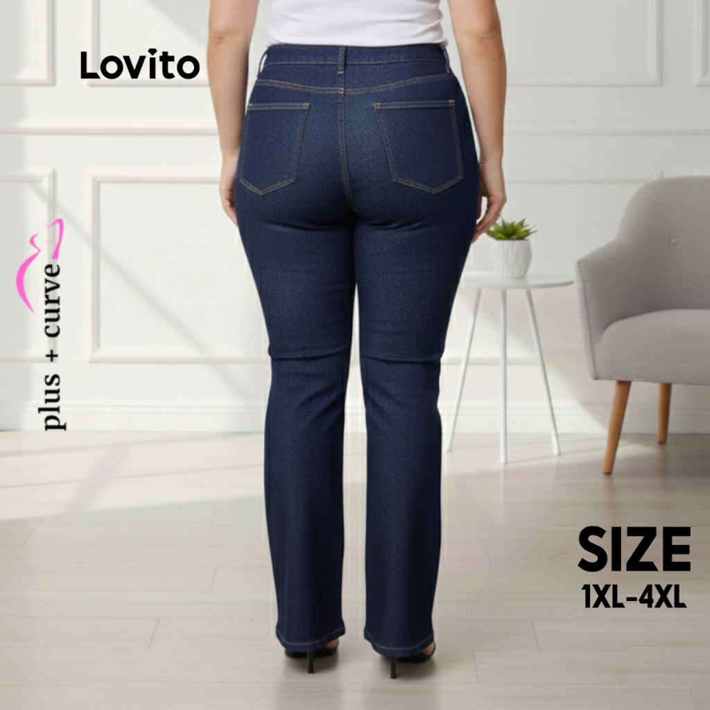 Lovito Calça Jeans Flare Feminina Plus Size LB1097BRL1127