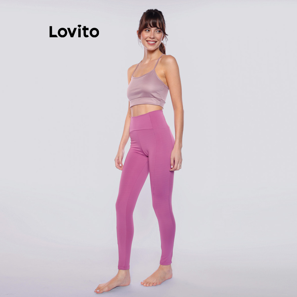 Lovito Calça Legging Feminina Esportiva Lisa com Cintura Anatômica Academia LB1267BRL1297