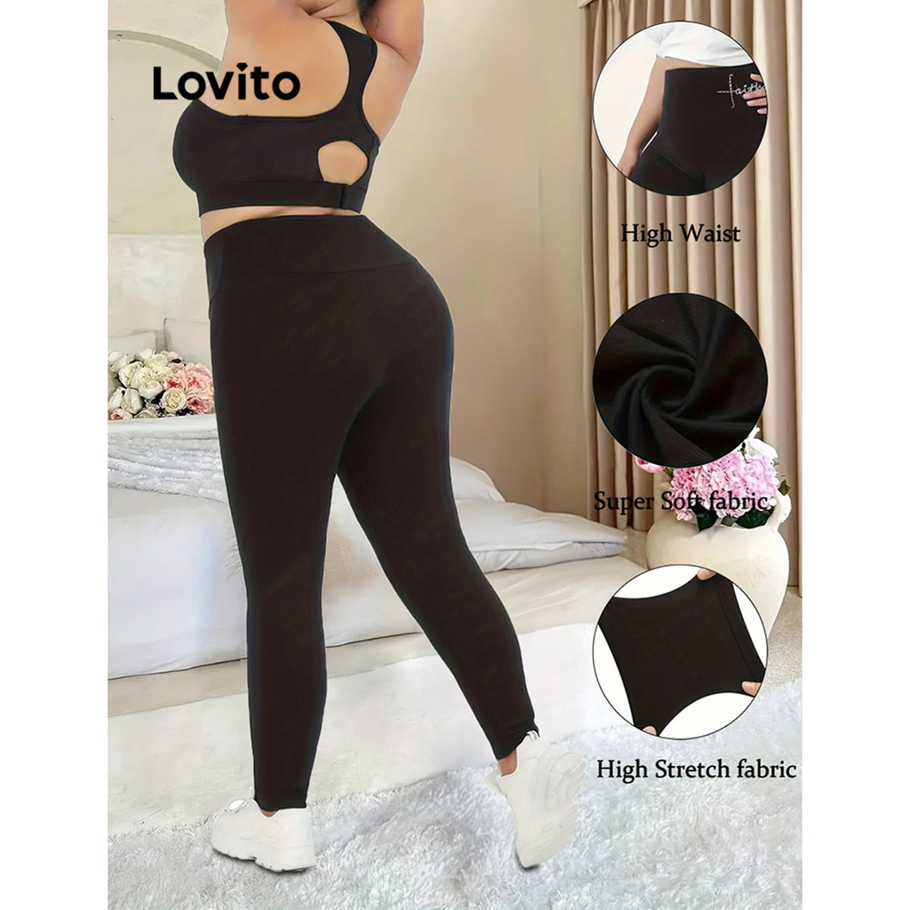 Lovito Calça Legging Plus Size Feminina com Estampa de Letras LNE72219