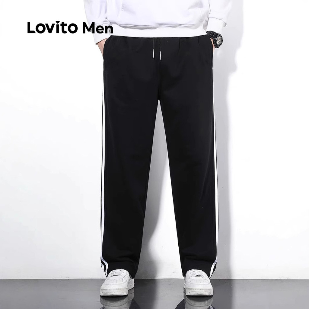 Lovito Calça Masculina Casual Jogger Preta com Estampa Colorida Primavera/Verão LNE110190