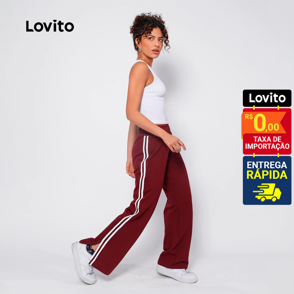 Lovito Calça Moletom Listras Laterais e Fenda LB872BRL902