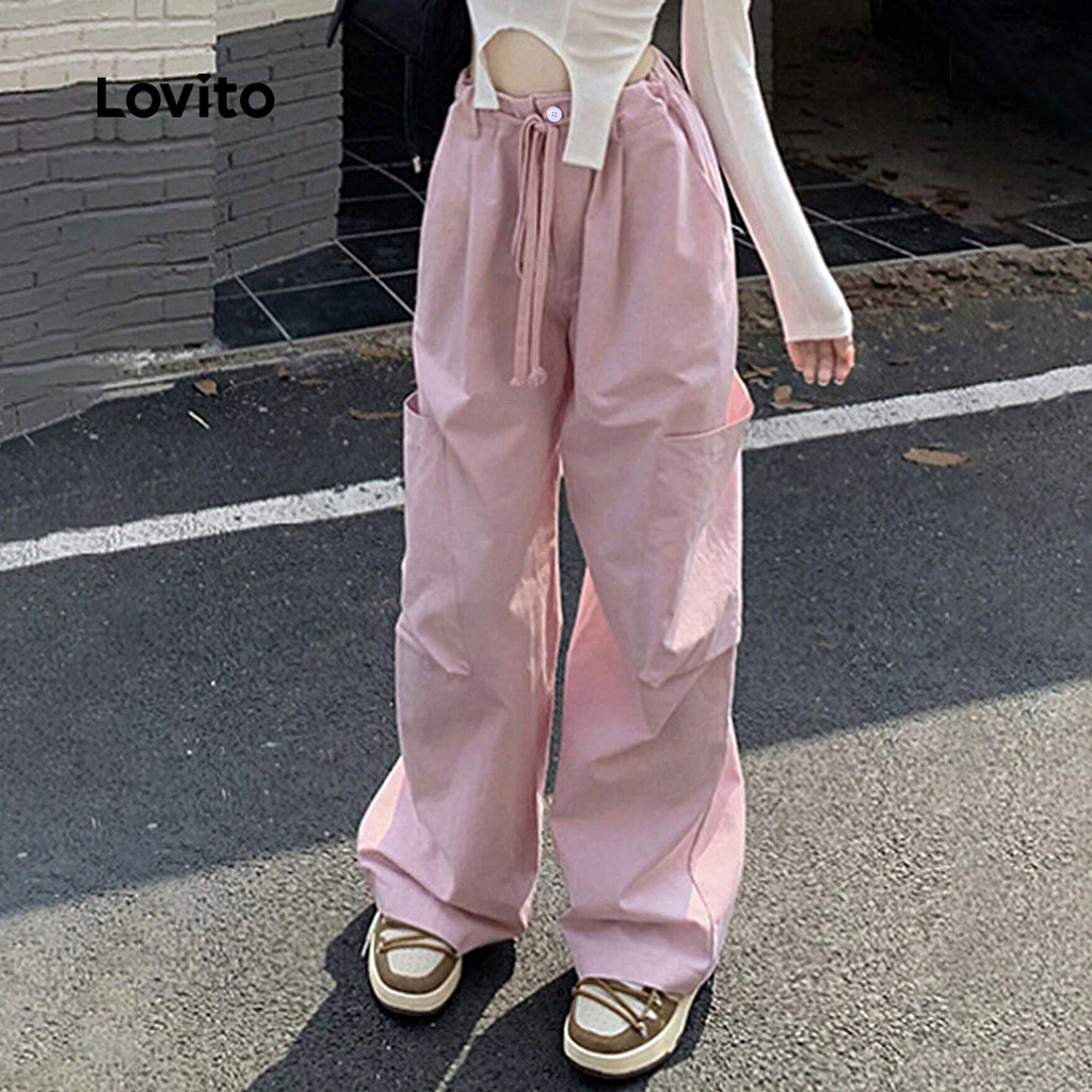 Lovito Calças Casuais com Bolso Cordão Amarra para Todas As Estações Calças rosa L142LD208