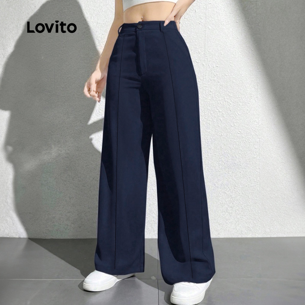 Lovito Calças Casuais com Botões Primavera/verão Calças Azul-marinho para mulheres L158AD222