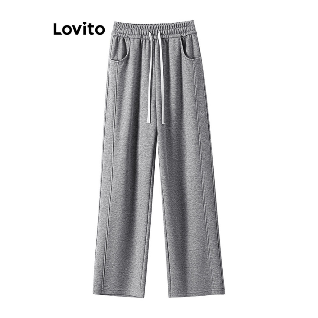 Lovito Calças Casuais Femininas Calças Lisas Com Cordão LNL54136