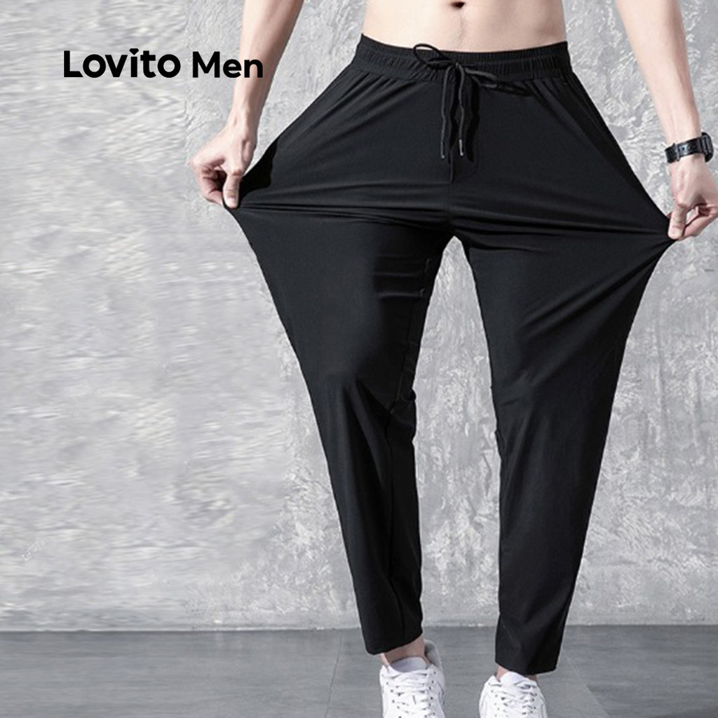 Lovito Calças de Jogging Esportivas com Cordão Primavera/verão Pretas para Homens LNE110189
