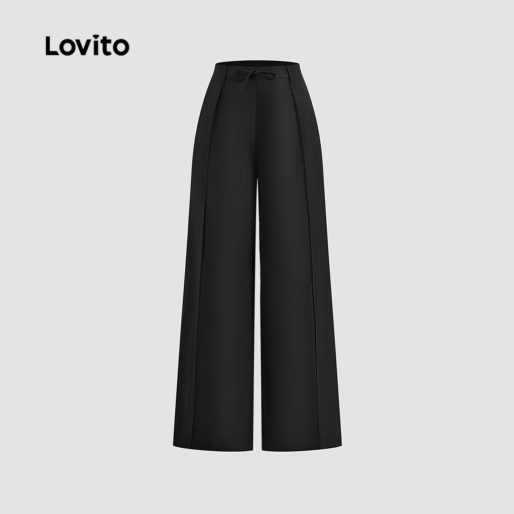 Lovito Calças elegantes com cadarço, calças pretas clássicas e versáteis de primavera/verão para mulheres LBL32217
