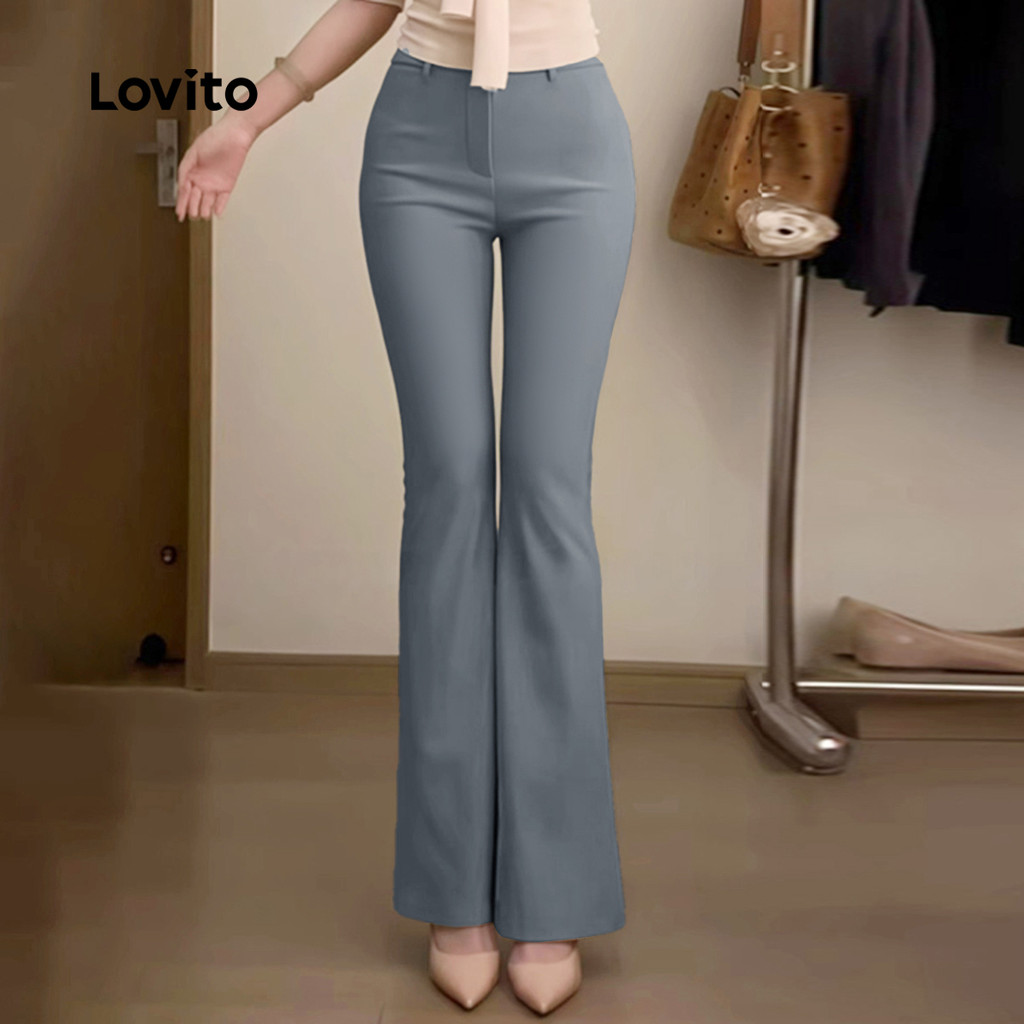 Lovito Calças Elegantes com Zíper de Torno e Conforto Primavera/verão Calças Cinza para Mulheres L154LD152\6