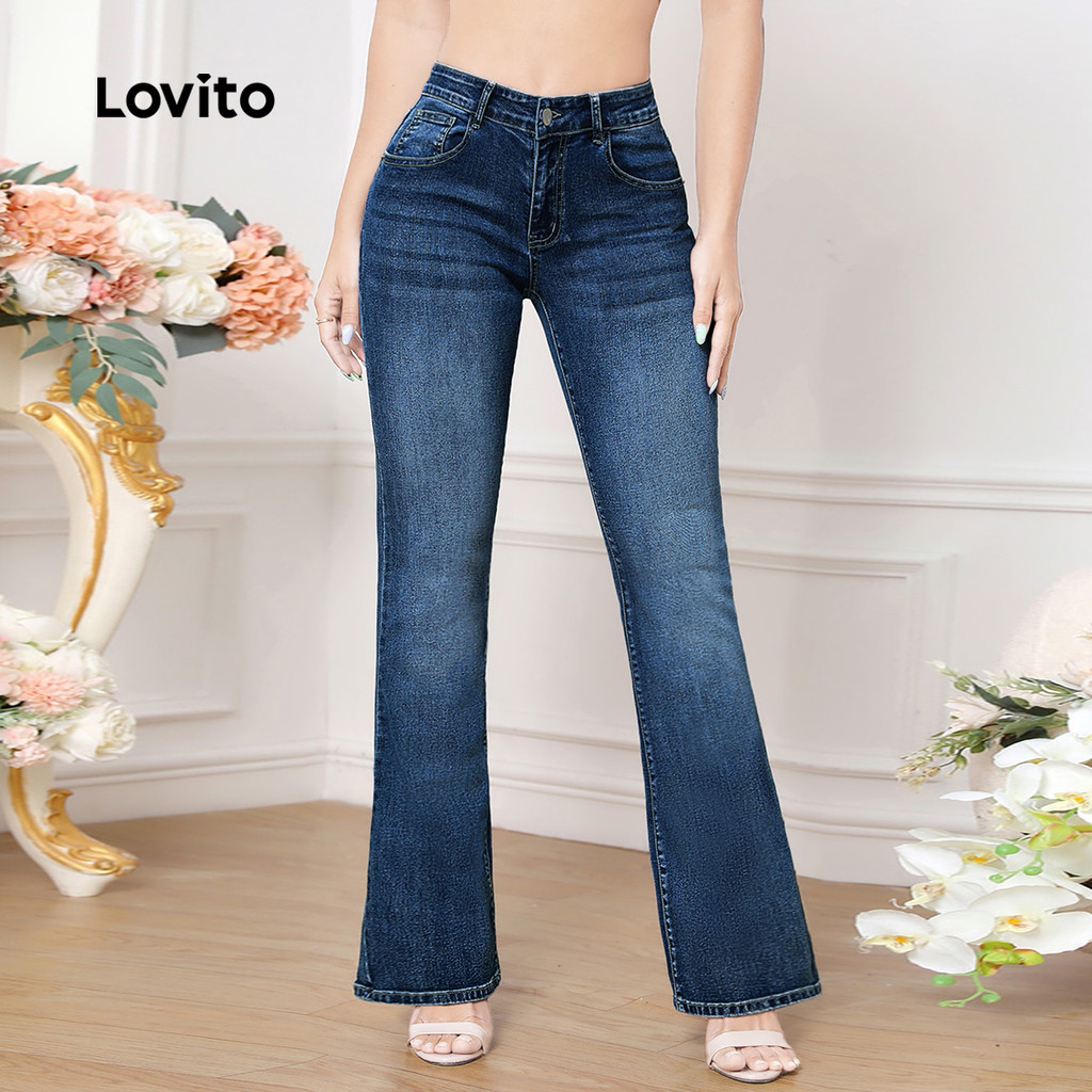 Lovito Calças Jeans Casuais com Botões Bolso Jeans Azul Primavera/verão para mulheres L158ED447