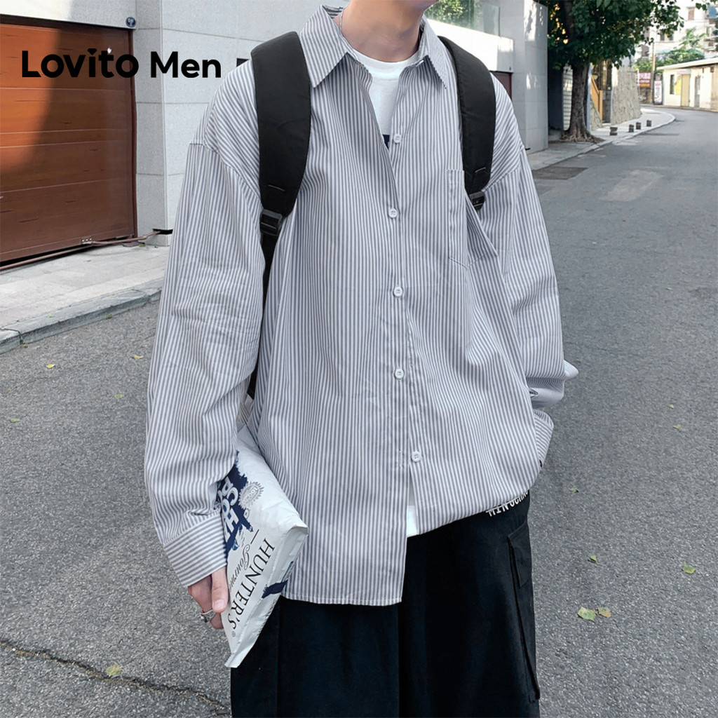 Lovito Camisa Casual com Botão Todas As Estações Camisa Azul para Homens LNE127033
