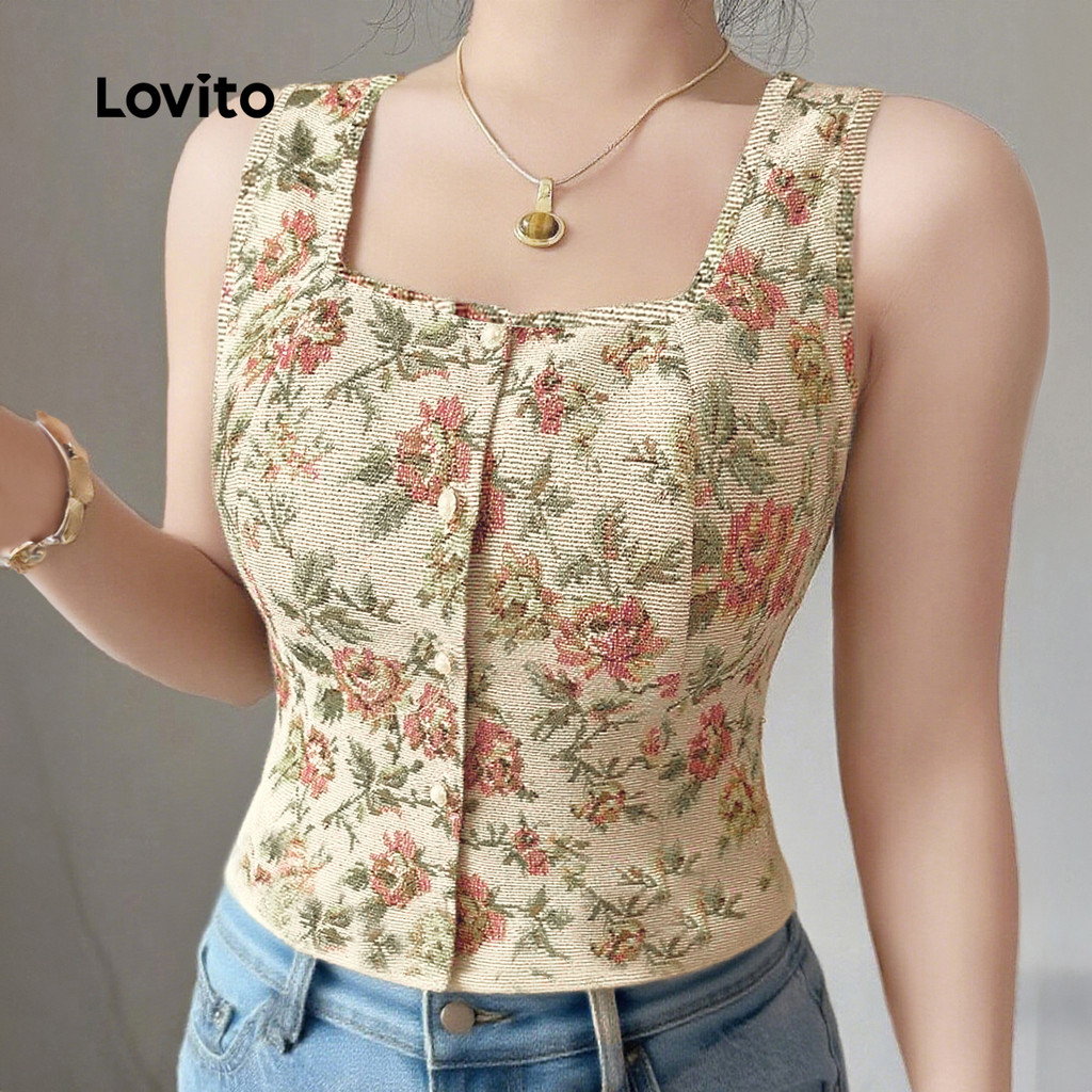 ✅DESTAQUES -❤️Botão -❤️Padrão -❤️Macio e confortável -❤️Primavera e verão -❤️Button-Bellished ✅DESCRIÇÕES Estampa / Padrão: floral Estilo:Casual Tamanho Plus:Não Material:Poliéster Composição:95% Poliéster + 5% Elastano Tipo de modelagem:Justo ao corpo Transparência:Não Esticar:Não-elástico Feito na China ✅O PACOTE INCLUI 1XPrincipal ✅INTRODUÇÃO LOVITO A Lovito é uma marca em crescimento que acredita no poder das meninas. Estamos comprometidos em oferecer opções de roupas fashion e acessíveis, para todos os estilos, necessidades e identidades. Acreditamos que a moda deve ser divertida, liberadora e fazer você se sentir incrível. Afinal, o melhor acessório para qualquer look é a autoconfiança! ✅NOTAS DE COMPRA Antes de comprar, dê uma olhadinha na tabela de medidas disponível no site. Lembre-se de que, por serem feitas manualmente, as medidas podem variar de 1 a 2 cm. As cores dos produtos também podem ter pequenas diferenças em relação às fotos, dependendo da iluminação e das configurações do seu dispositivo. Siga nossa loja e conheça novos itens e as melhores ofertas para você!! Se você tiver alguma dúvida, converse conosco e responderemos o mais rápido possível.😊