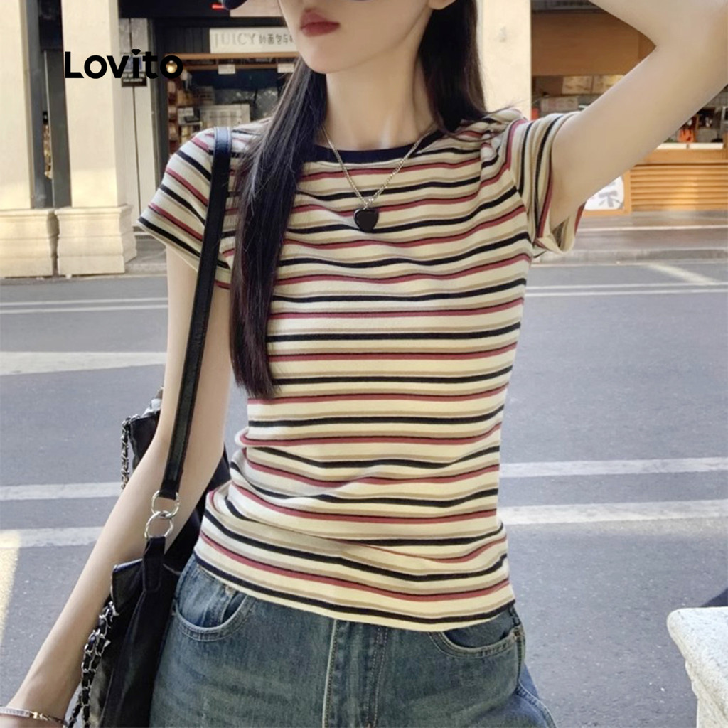 ✅DESTAQUES -❤️Padrão -❤️Textura delicada -❤️Primavera e verão ✅DESCRIÇÕES Estampa / Padrão: listrado Estilo:Casual Tamanho Plus:Não Material:Poliéster Composição:95% Poliéster + 5% Elastano Tipo de modelagem: ajuste regular Transparência:Não Esticar:Alongamento Médio Feito na China ✅O PACOTE INCLUI 1XCamiseta ✅INTRODUÇÃO LOVITO A Lovito é uma marca em crescimento que acredita no poder das meninas. Estamos comprometidos em oferecer opções de roupas fashion e acessíveis, para todos os estilos, necessidades e identidades. Acreditamos que a moda deve ser divertida, liberadora e fazer você se sentir incrível. Afinal, o melhor acessório para qualquer look é a autoconfiança! ✅NOTAS DE COMPRA Antes de comprar, dê uma olhadinha na tabela de medidas disponível no site. Lembre-se de que, por serem feitas manualmente, as medidas podem variar de 1 a 2 cm. As cores dos produtos também podem ter pequenas diferenças em relação às fotos, dependendo da iluminação e das configurações do seu dispositivo. Siga nossa loja e conheça novos itens e as melhores ofertas para você!! Se você tiver alguma dúvida, converse conosco e responderemos o mais rápido possível.😊