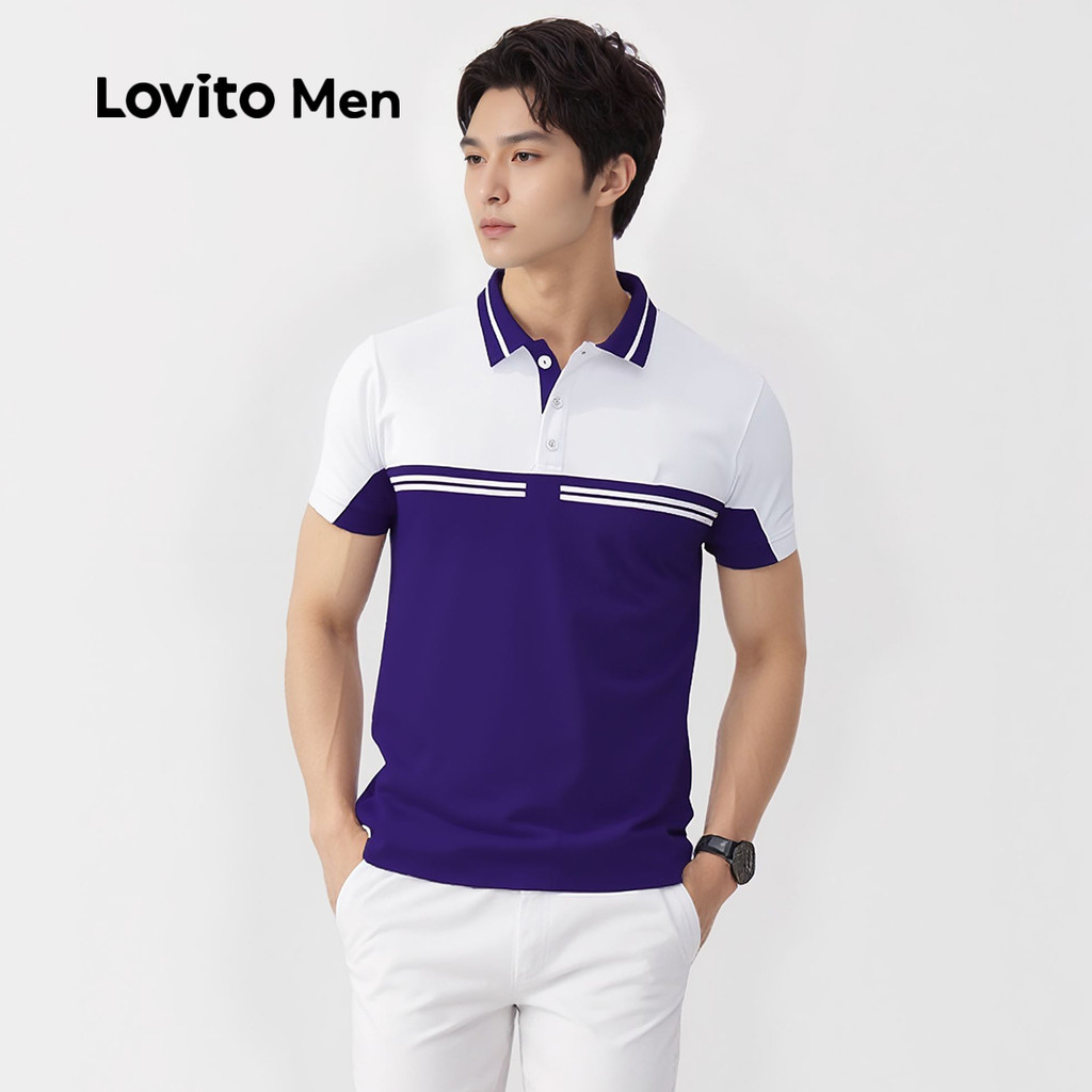 Lovito Camisa Pólo Casual Colorida de Primavera/verão - Camisa Pólo Azul Escura para homens LNE110040