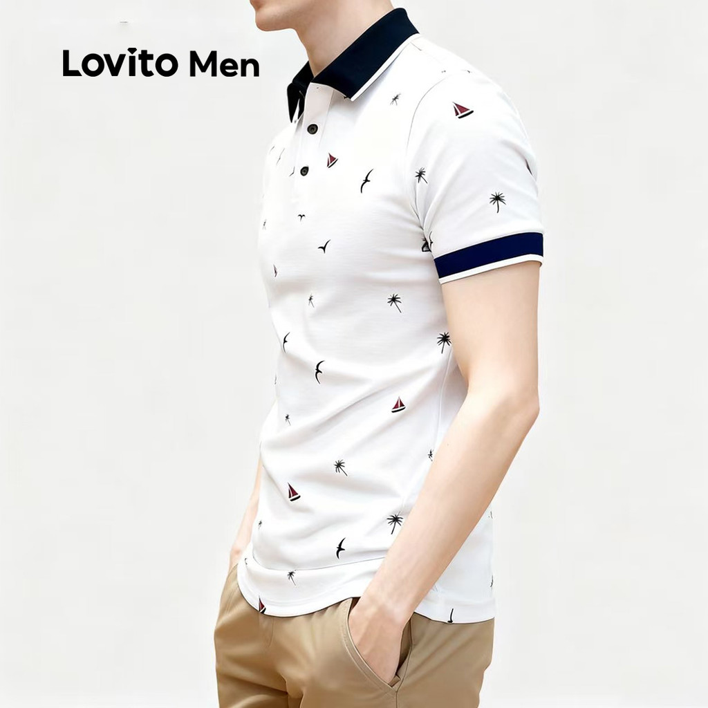 Lovito Camisa Polo Masculina Casual Clássica E Versátil Com Blocos De Cores Para Primavera/verão Cor Branca LNE122140