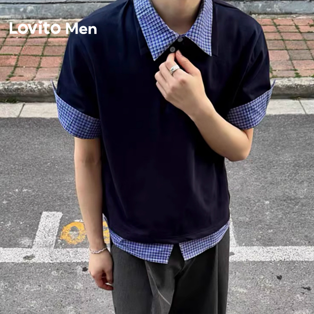 Lovito Camisa Polo Masculina Casual Dupla Face Azul Marinho Primavera Verão LNE127145