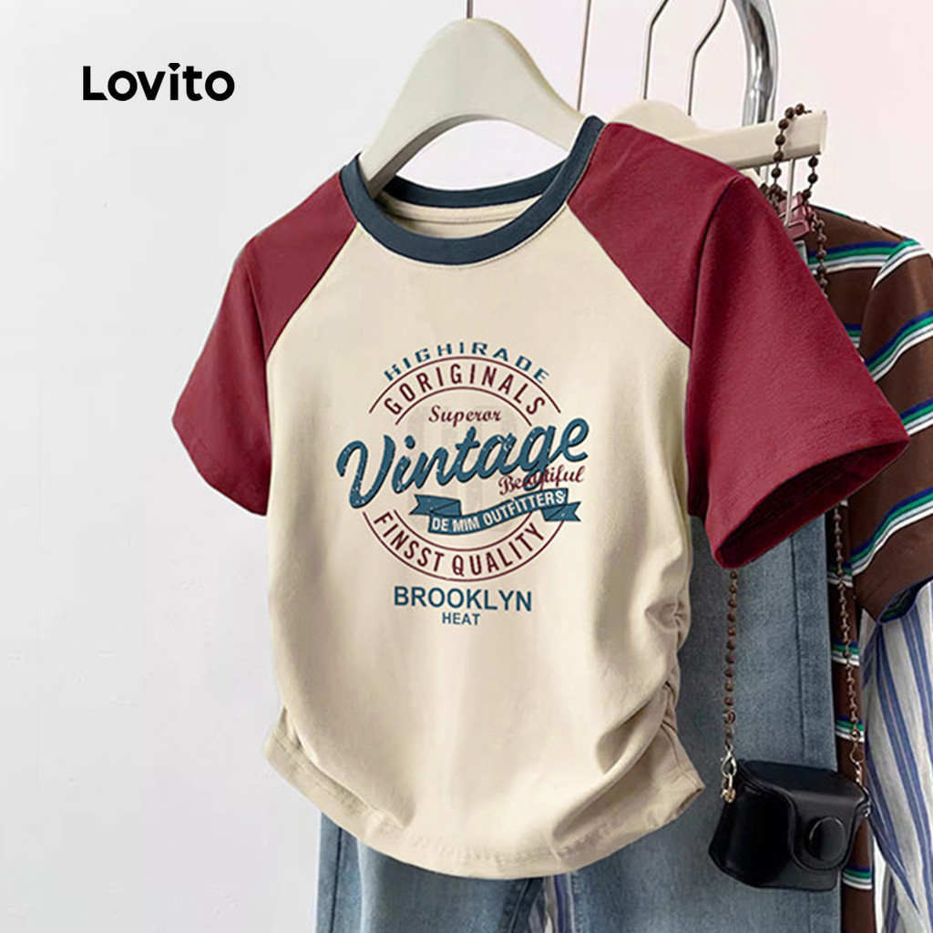 ✅DESTAQUES -❤️Cor de contrasteColorblock -❤️Costura de tecido -❤️Padrão -❤️Macio e confortável -❤️Primavera e verão ✅DESCRIÇÕES Estampa / Padrão:Letra Estilo:Casual Tamanho Plus:No Material:Poliéster Composição:95%Polyester+5%Spandex Tipo de modelagem:Regular Fit Transparência:No Esticar:Medium Stretch Feito na China ✅O PACOTE INCLUI 1XCamiseta ✅INTRODUÇÃO LOVITO A Lovito é uma marca em crescimento que acredita no poder das meninas. Estamos comprometidos em oferecer opções de roupas fashion e acessíveis, para todos os estilos, necessidades e identidades. Acreditamos que a moda deve ser divertida, liberadora e fazer você se sentir incrível. Afinal, o melhor acessório para qualquer look é a autoconfiança! ✅NOTAS DE COMPRA Antes de comprar, dê uma olhadinha na tabela de medidas disponível no site. Lembre-se de que, por serem feitas manualmente, as medidas podem variar de 1 a 2 cm. As cores dos produtos também podem ter pequenas diferenças em relação às fotos, dependendo da iluminação e das configurações do seu dispositivo. Siga nossa loja e conheça novos itens e as melhores ofertas para você!! Se você tiver alguma dúvida, converse conosco e responderemos o mais rápido possível.