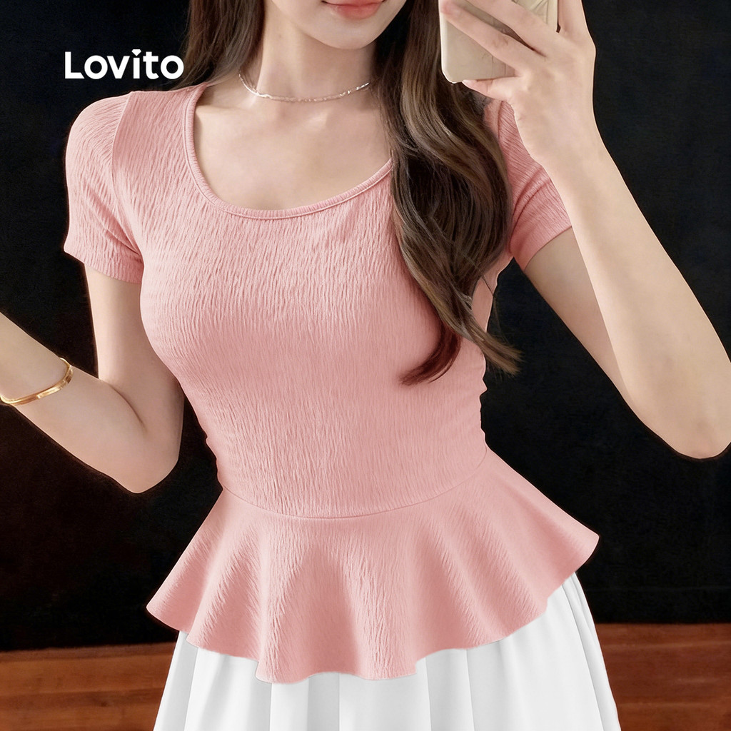 ✅DESTAQUES -❤️Bainha com babados Bainha com babados -❤️Simples -❤️LazerLazer -❤️Amigável à pele e confortável -❤️Primavera e verão ✅DESCRIÇÕES Estampa / Padrão:Plain Estilo:Casual Tamanho Plus:No Material:Poliéster Composição:95%Polyester+5%Spandex Tipo de modelagem:Slim Fit. Transparência:No Esticar:Medium Stretch Feito na China ✅O PACOTE INCLUI 1XCamiseta ✅INTRODUÇÃO LOVITO A Lovito é uma marca em crescimento que acredita no poder das meninas. Estamos comprometidos em oferecer opções de roupas fashion e acessíveis, para todos os estilos, necessidades e identidades. Acreditamos que a moda deve ser divertida, liberadora e fazer você se sentir incrível. Afinal, o melhor acessório para qualquer look é a autoconfiança! ✅NOTAS DE COMPRA Antes de comprar, dê uma olhadinha na tabela de medidas disponível no site. Lembre-se de que, por serem feitas manualmente, as medidas podem variar de 1 a 2 cm. As cores dos produtos também podem ter pequenas diferenças em relação às fotos, dependendo da iluminação e das configurações do seu dispositivo. Siga nossa loja e conheça novos itens e as melhores ofertas para você!! Se você tiver alguma dúvida, converse conosco e responderemos o mais rápido possível.