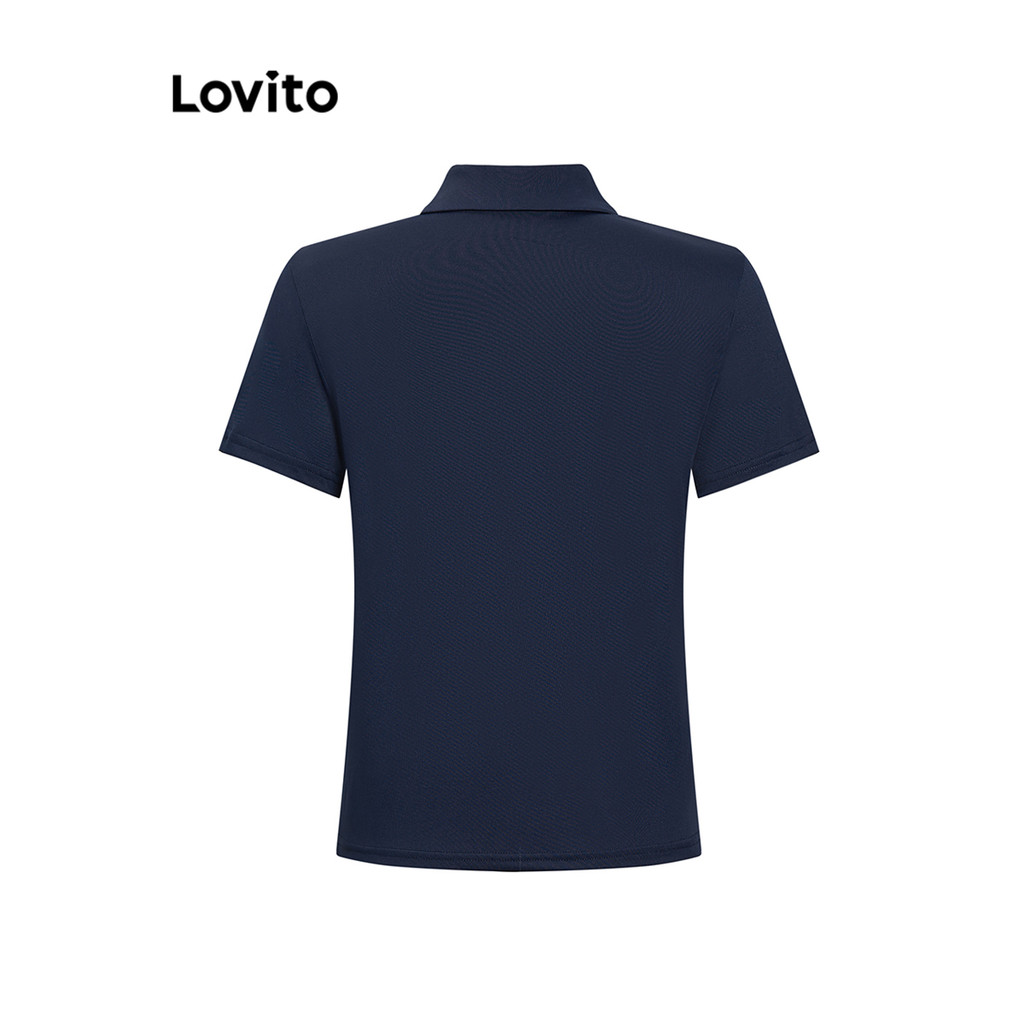 Lovito Camiseta Casual Com Botão De Laço Liso Para Mulheres L105MD633