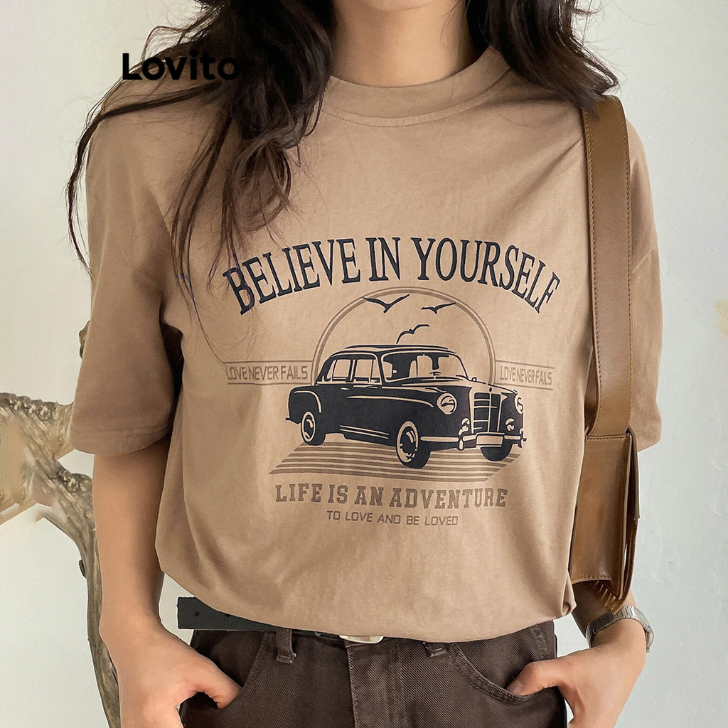 Lovito Camiseta Casual Com Estampa De Letras Para Mulheres L108ED197