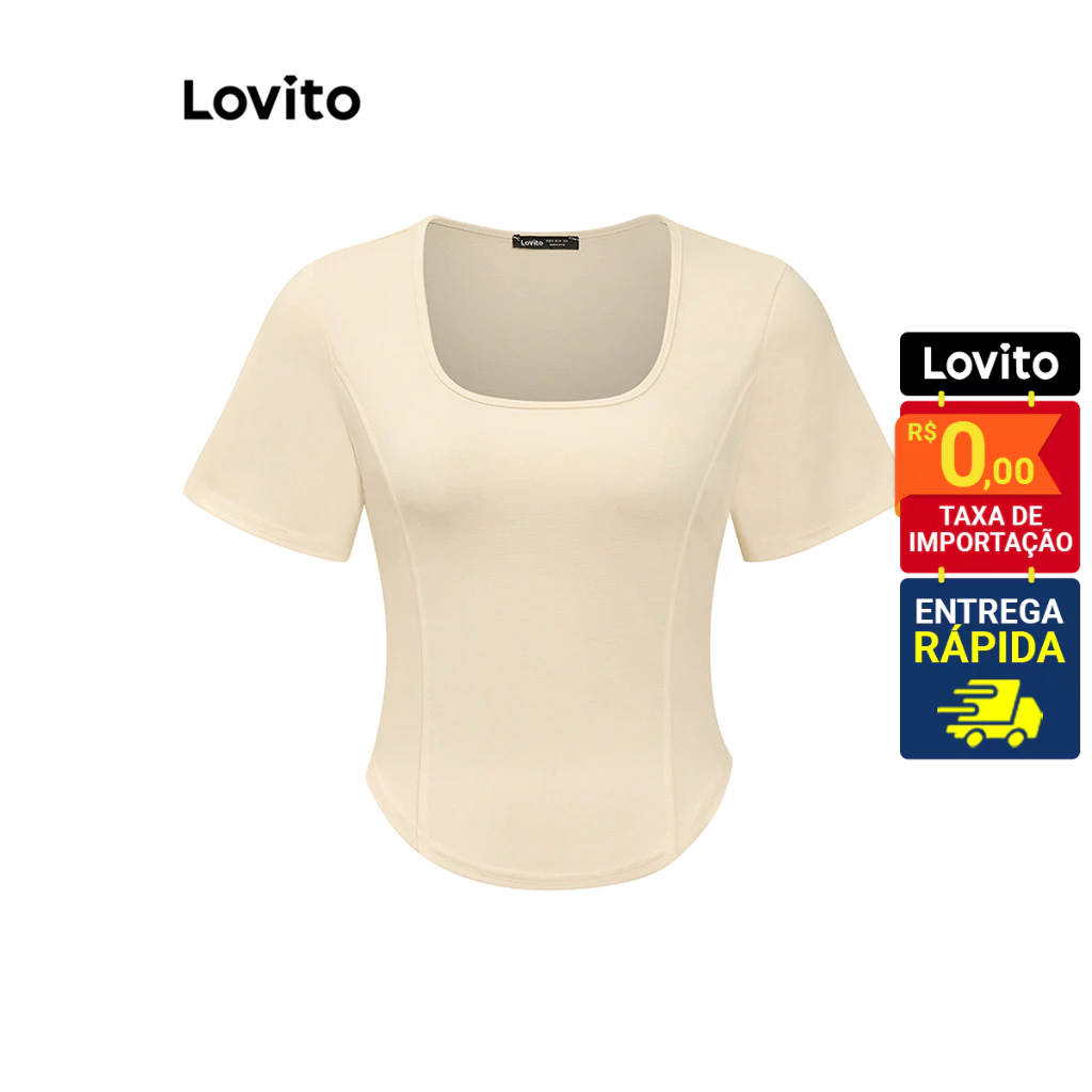 Lovito Camiseta Casual Feminina Manga Curta com gola Quadrada LNE31215 tem frete grátis?