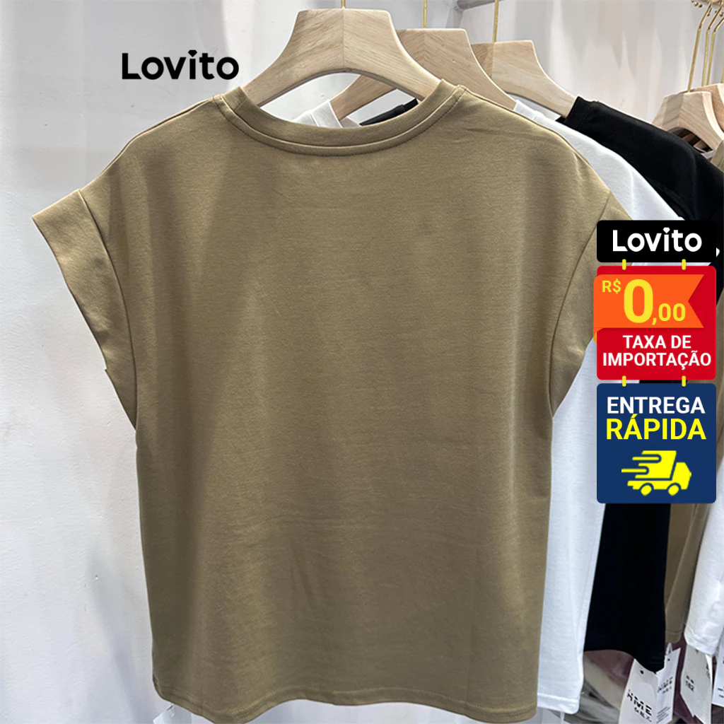 Lovito Camiseta Casual Feminina Manga Curta Sem Cava e Estampa Frente LNA24019