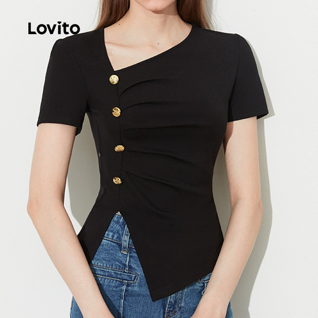 Lovito Camiseta Casual Lisa Assimétrica Verão/primavera Para Mulheres L124AD358