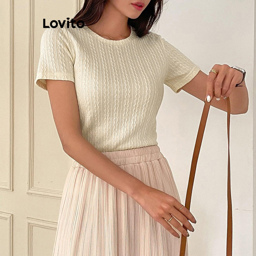 Lovito Camiseta Casual Lisa Básica De Verão Para Mulheres L108ED638