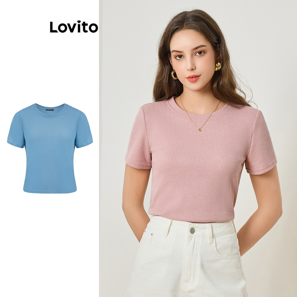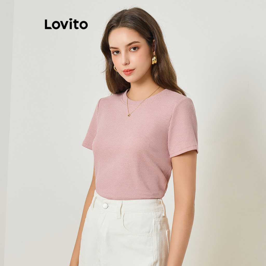 Lovito Camiseta Casual Lisa Jacquard Para Mulheres L83ED010 (Multicolorido)