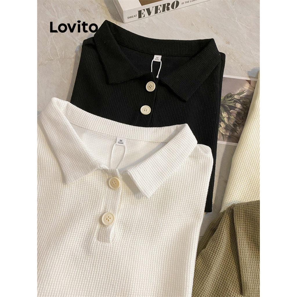 Lovito Camiseta Casual Lisa - Malha Waffle - Camiseta Polo Feminina L68ED039 (Multicolorido)