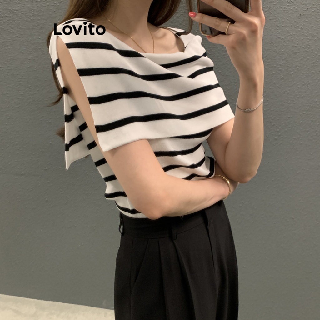 Lovito Camiseta Casual Listrada De Frio Para Mulheres LNA21258\6