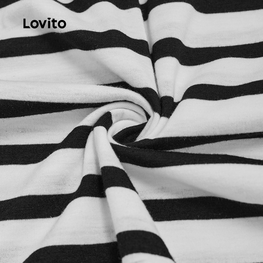 Lovito Camiseta Casual Listrada Franzida Para Mulheres LNE46342