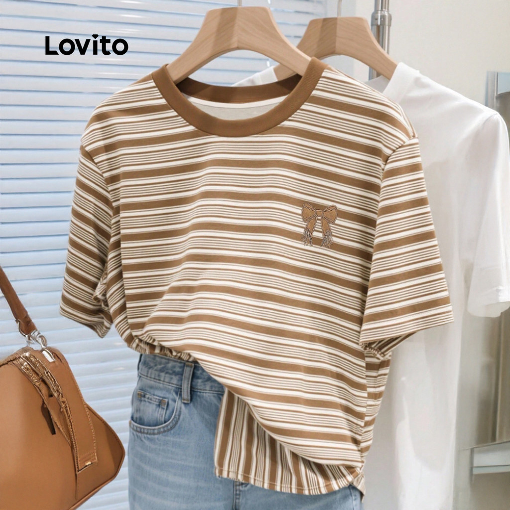 ✅Destaques -❤️Colorblock -❤️Laço -❤️Macio E Confortável -❤️Primavera E Verão ✅Descrição Estampa: Listrada Estilo: Casual Tamanhos Plus Size: Não Material: Poliéster Composição: 95% Poliéster + 5% Elastano Modelagem: Regular Transparência: Não Elasticidade: Leve Elasticidade Origem: China Continental ✅O Pacote Inclui 1 Camisa ✅Apresentação Da Lovito A Lovito É Uma Marca Emergente Que Acredita No Poder Feminino, Comprometida Em Oferecer Opções De Roupas Modernas E Acessíveis Para Diferentes Estilos, Necessidades E Identidades. Acreditamos Que A Moda Deve Ser Divertida, Libertadora E Fazer Você Se Sentir Bem. Afinal, O Melhor Acessório Para Qualquer Look É A Autoconfiança. ✅Notas De Compra Por Favor, Consulte A Tabela De Tamanhos Antes De Comprar. Pode Haver Uma Pequena Diferença Devido À Medição Manual. Todas As Fotos Dos Produtos Nesta Loja São Fotos Reais. Devido À Iluminação E À Diferença De Tela, Pequenas Variações De Cor E Textura Do Produto São Normais. Siga Nossa Loja E Descubra Novos Itens E As Melhores Ofertas Para Você!! Se Você Tiver Alguma Dúvida Ou Problema, Sinta-Se À Vontade Para Nos Enviar Uma Mensagem. 😊