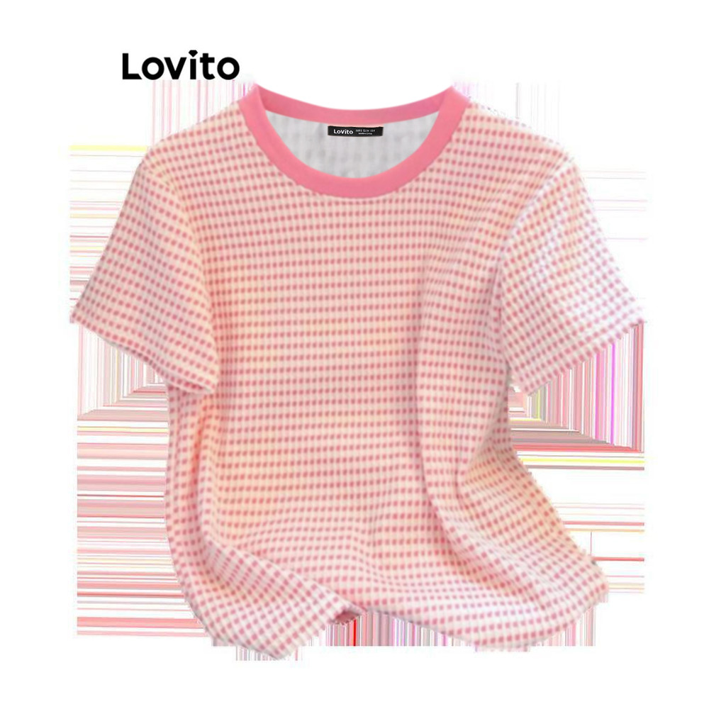 Lovito Camiseta Casual Xadrez Colorblock Para Mulheres LNE70328