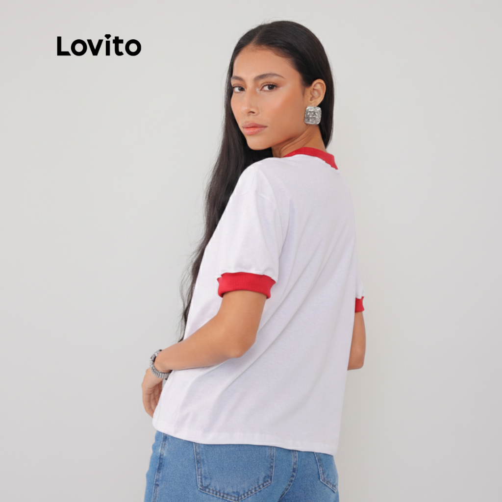 ✅DESTAQUES -❤️Gola Contrastante -❤️Fresca e Confortável ✅DESCRIÇÕES Estampa: Lisa Estilo: Bonito Tamanho Plus: Não Composição: 100% Algodão Tipo de Caimento: Regular Transparência: Não Elasticidade: Levemente Elástica Região de Origem: Brasil ✅O PACOTE INCLUI 1 Camiseta ✅INTRODUÇÃO À LOVITO A Lovito é uma marca emergente que acredita no poder feminino, comprometida em oferecer opções de roupas elegantes e acessíveis para diferentes estilos, necessidades e identidades. Acreditamos que a moda deve ser divertida, libertadora e fazer você se sentir bem. Afinal, o melhor acessório para qualquer look é a autoconfiança. ✅NOTAS DE COMPRA Compare suas medidas com nossa tabela disponível no site. Lembre-se de que, por serem feitas manualmente, as medidas podem variar de 1 a 2 cm. As cores dos produtos também podem ter pequenas diferenças em relação às fotos, dependendo da iluminação e das configurações do seu dispositivo. Siga nossa loja e conheça novos itens e as melhores ofertas para você!! Se você tiver alguma dúvida, converse conosco e responderemos o mais rápido possível.😊