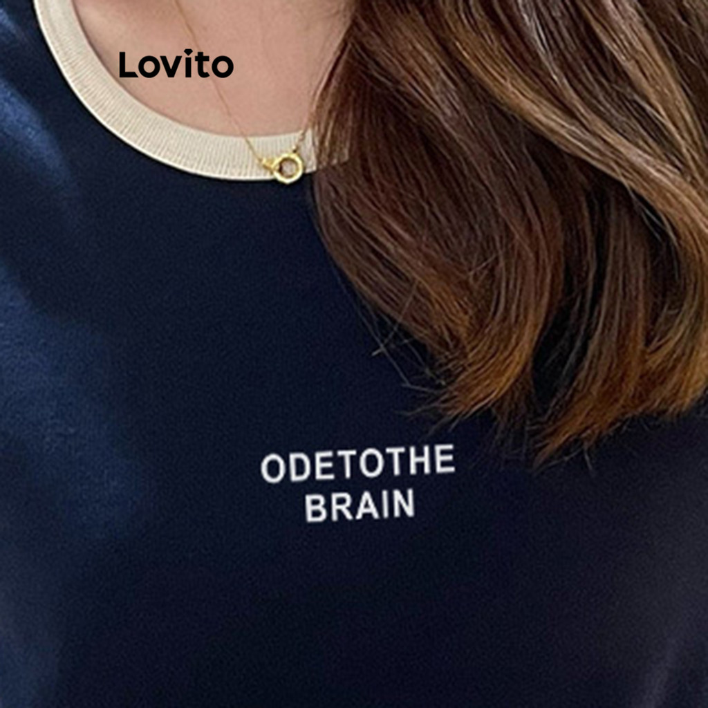 Lovito Camiseta Elegante Com Letras Colorblock Para Mulheres LNE71421